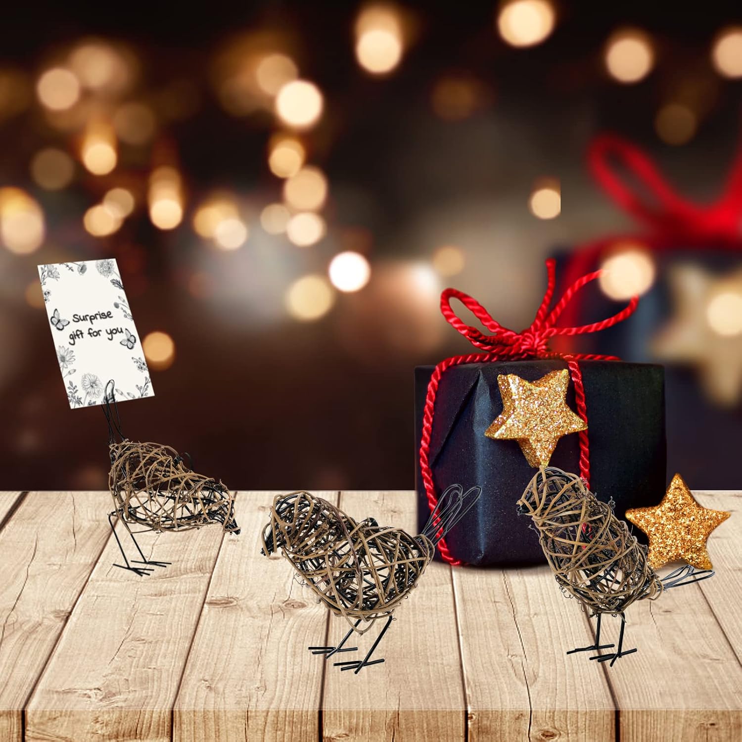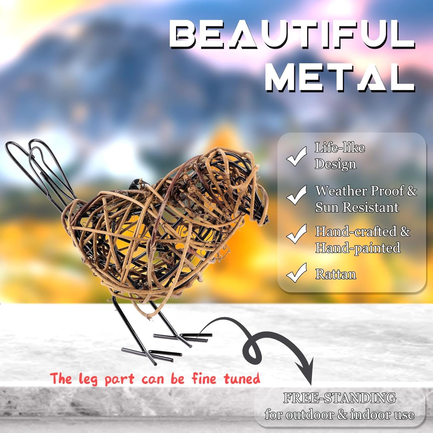 • [Dual-Function Design] ✓ Memo Clip Capacity: Holds 5 standard index cards or 3 photos (4x6") ✓ Hidden Design: cleverly hiding the memo clip on the tail of the bird ✓ Adjustable base: can fine tune the legs of birds to maintain stability on uneven surfaces