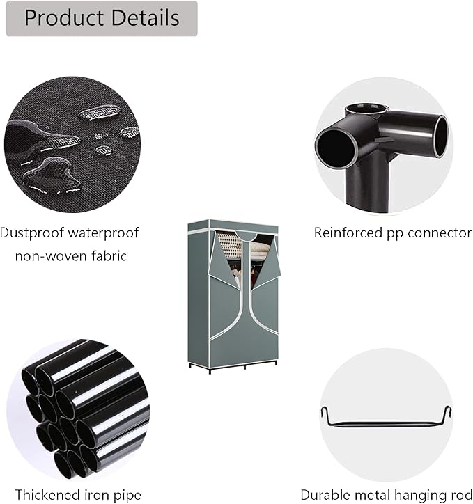 • 【Dustproof,Resistant to Dirt】High quality non-woven fabric cover,so that your clothes away from dust.Dark colored cover can ensure the practicality of the wardrobe,so it can be used for many years.