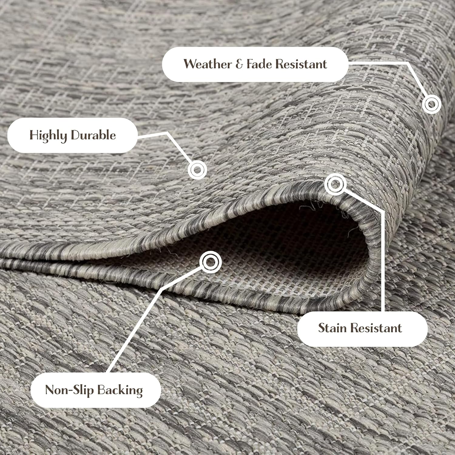 Adiva Rugs Outdoor Indoor Area Rug, Weather Resistant, Easy to Clean, Stain Resistant Floor Mat for Dining Room, Backyard, Deck, Patio (Silver Weiss, 2' x 3')
