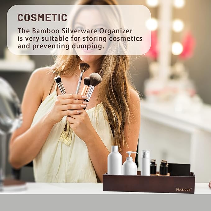 • 【PRACTICAL STORAGE SPACE】PRATIQUE drawer organizer can reduce clutter and avoid desperately searching for lost items. Ensure drawers in the kitchen and beyond are neat and organized.The flatware organizer is made of bamboo, which has a neutral light wood color and it will look beautiful as your kitchen, closet, garage and office drawer.