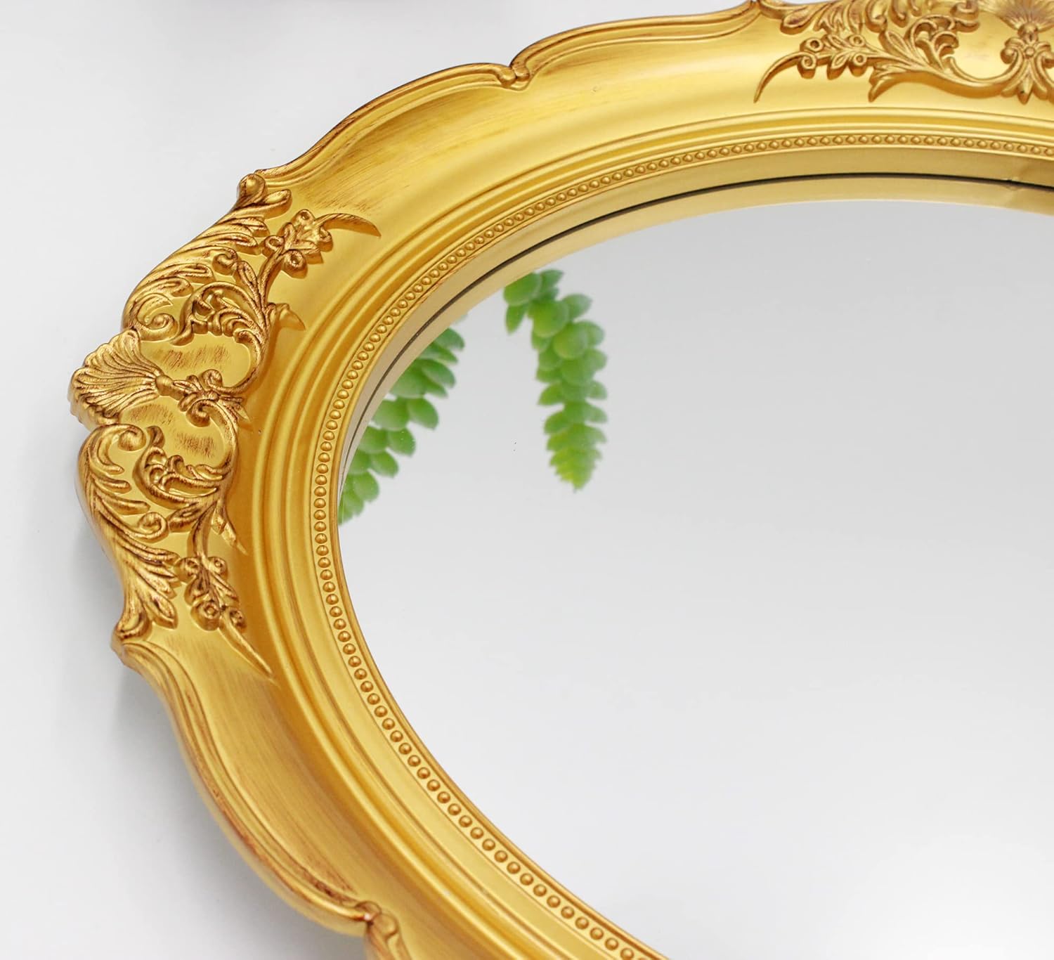 • TIMELESS STYLE: This elegant Gold oval framed wall mirror lends a touch of vintage flair to any living space with its graceful curves and antique inspired design.