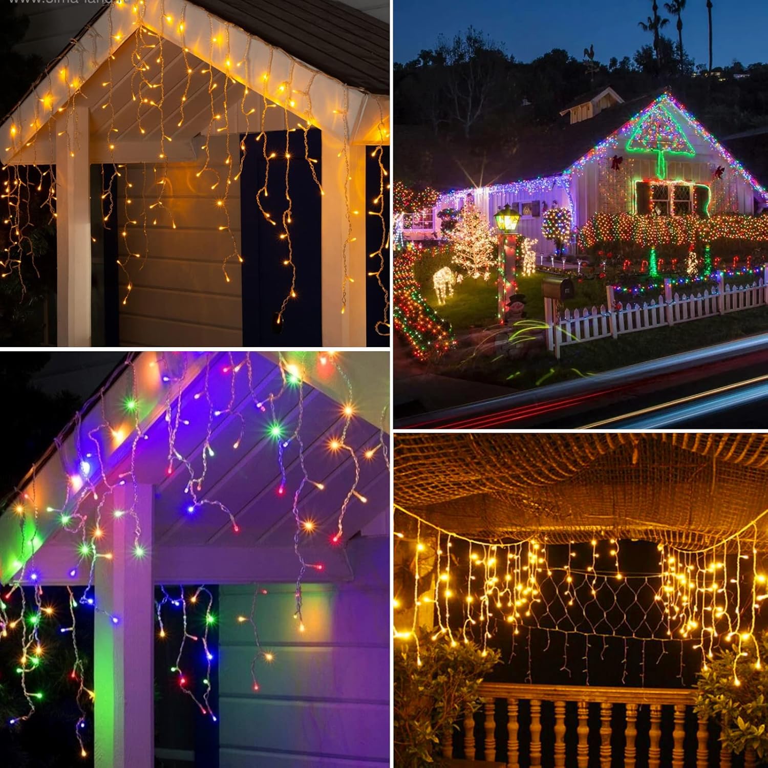 • Connectable & Commercial Grade: The IP44 waterproof icicle fairy lights can connect up to 3 strands together to make a 120 feet long string lights, satisfy your need for large area Christmas decorations