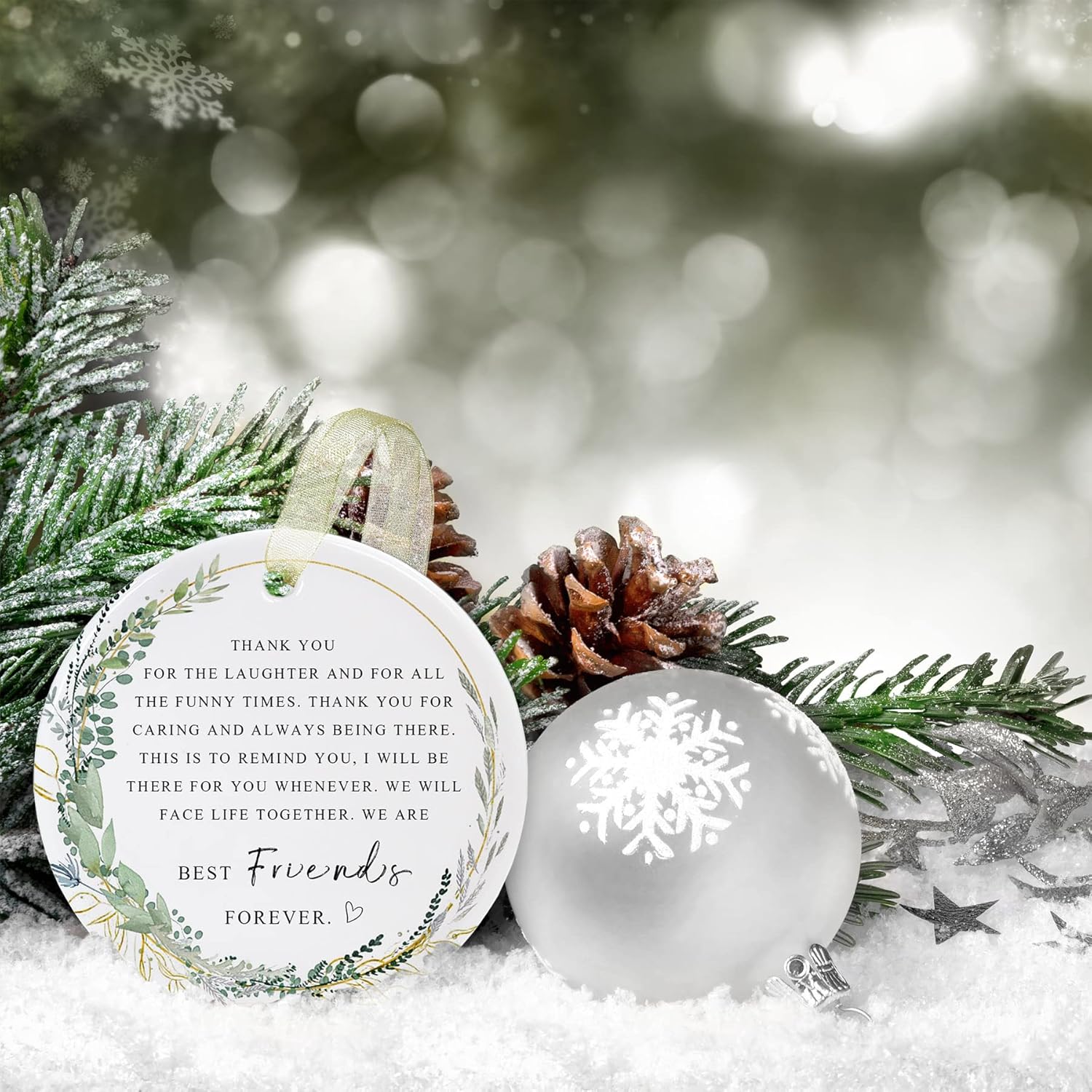 • 🔶【A wonderful memorial gift】Best friend ever gifts!This unique best gifts for friend is a great home decoration that will create a wonderful festive atmosphere in your home. Hang the christmas ornaments for friend on the window,wall,Christmas tree for a strong Christmas atmosphere that will make you and your family feel happy.