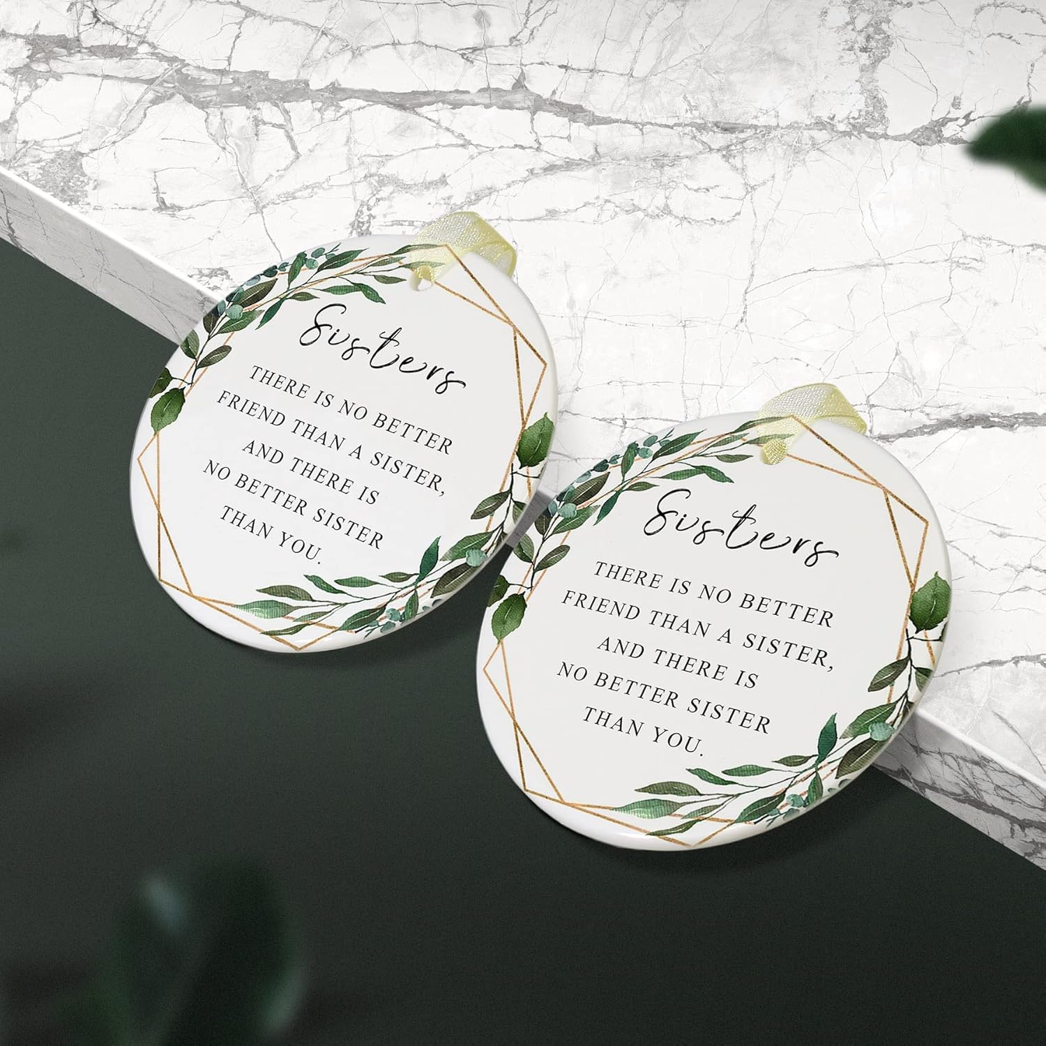 • 🌼【Perfect and delicate size】This is a sister memory ornament with a diameter of 2.9 inches and a thickness of only 0.18 inches. The product includes: a round sis ornamentt*1, a gift box*1 and a lanyard*1. The gift box comes with it makes it easy for you to give the best sis ever gifts directly to family and friends and other special people in your life, and the lanyard that comes with it helps to hang it easily on the Christmas tree or anywhere you want.