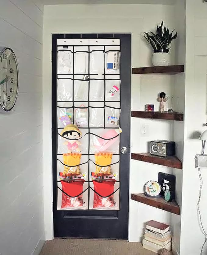 • 【1 Pack Over the Door Organizer】with 6 roomy and large Transparent pockets+12 routine pockets, hold more than 12 pairs shoes to free up floor/shelf space.