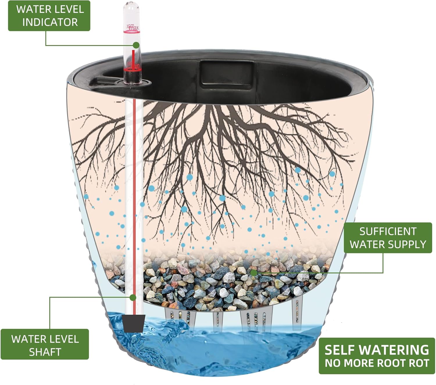 • Drainage System: The design prevents overwatering and underwatering by allowing excess water to drain.