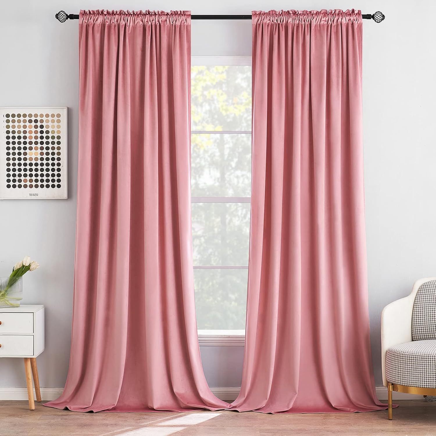 MIULEE Blush Pink Velvet Curtains Thermal Insulated Blackout Curtain Drapes for Bedroom Living Room Darkening 84 Inches Long Curtains Panels Rod Pocket Set of 2