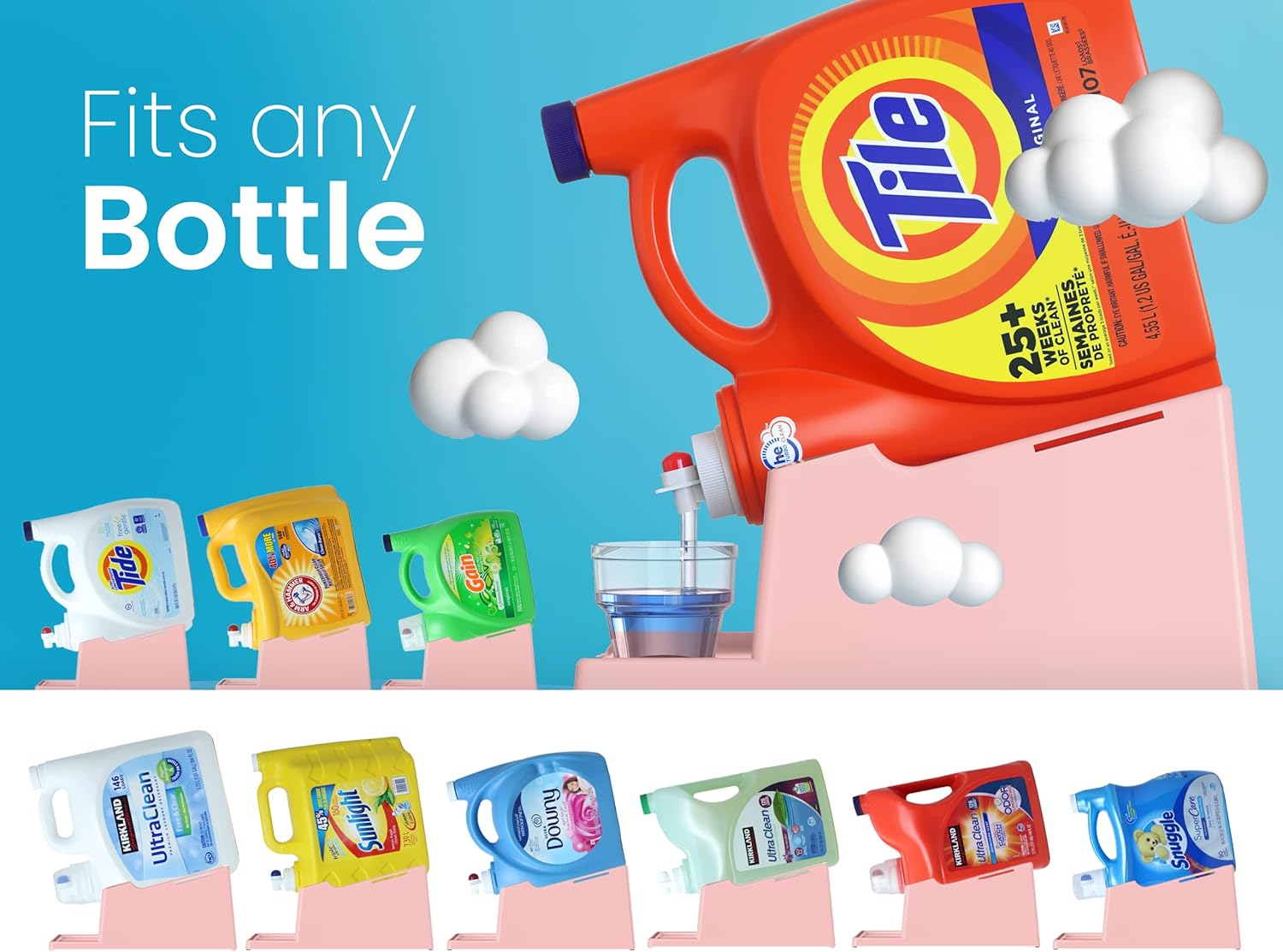 • [Versatile Fit]: The liquid laundry detergent holder station's optimal size (7.9"L x 12.2"W x 5.5"H) accommodates various bottle sizes, providing a perfect fit for most detergent containers without taking up too much space. (Laundry Soap, Cup, and Bottles NOT Included)