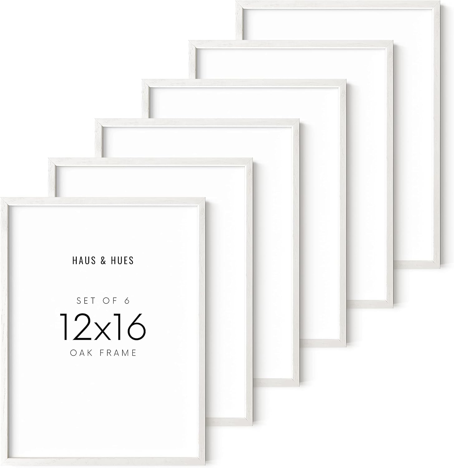 HAUS AND HUES White Oak 12x16 Inch White Picture Frames - Set of 6 White Frames Gallery Wall, White Picture Frames 12x16, White Gallery Wall Frame Set, White Picture Frames Pack (White Oak Frame)