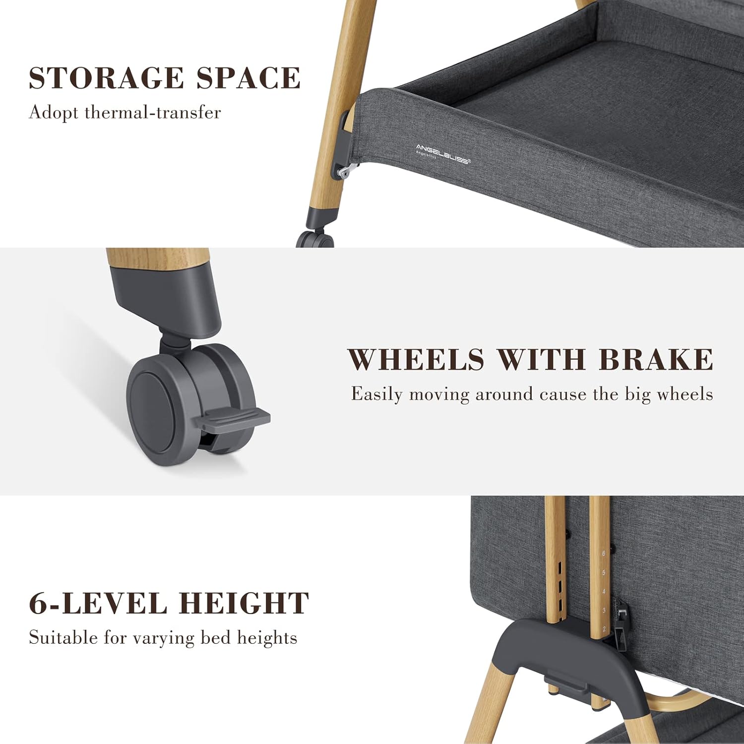 ANGELBLISS Baby Bassinet, Bedside Sleeper, Easy Folding Bedside Crib with Breathable & Washable Mattress Baby Bed, 6-Level Adjustable Portable Bassinets for Safe Co-Sleeping for Newborn Infant