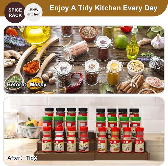 • 【Extendable Design】The spice rack organizer is retractable and has a width range of 8.74" - 15.59". The width can be adjusted according to your needs, making efficient use of your storage space. Wonderful storage solution for spice jars