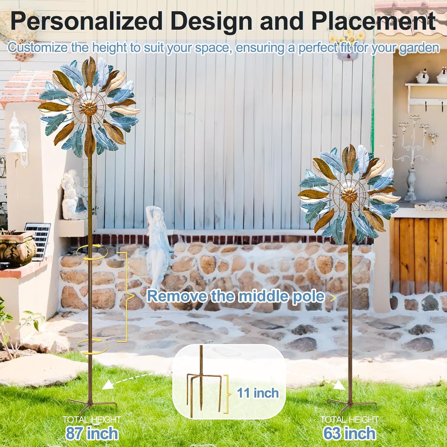 • 【87'' Extra Large Garden Spinners】- Different from small-sized windmills, this 22" wide and 87" height large-sized are more ornamental. And the 22mm diameter tube is thicker and more stable to resist strong wind. You can adjust the height as you need. A wonderful decoration to any garden