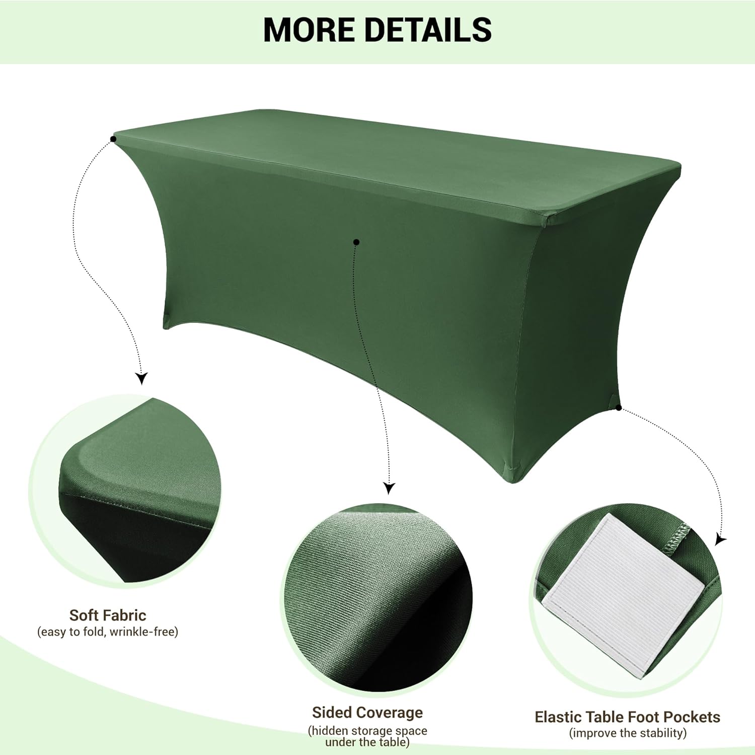Obstal Spandex Table Cover 4ft Fitted Tablecloth Rectangular - Stretch Rectangle Folding Table Cloth for Birthday Party Wedding Banquet, Blackish Green, 48L x 24W Inch