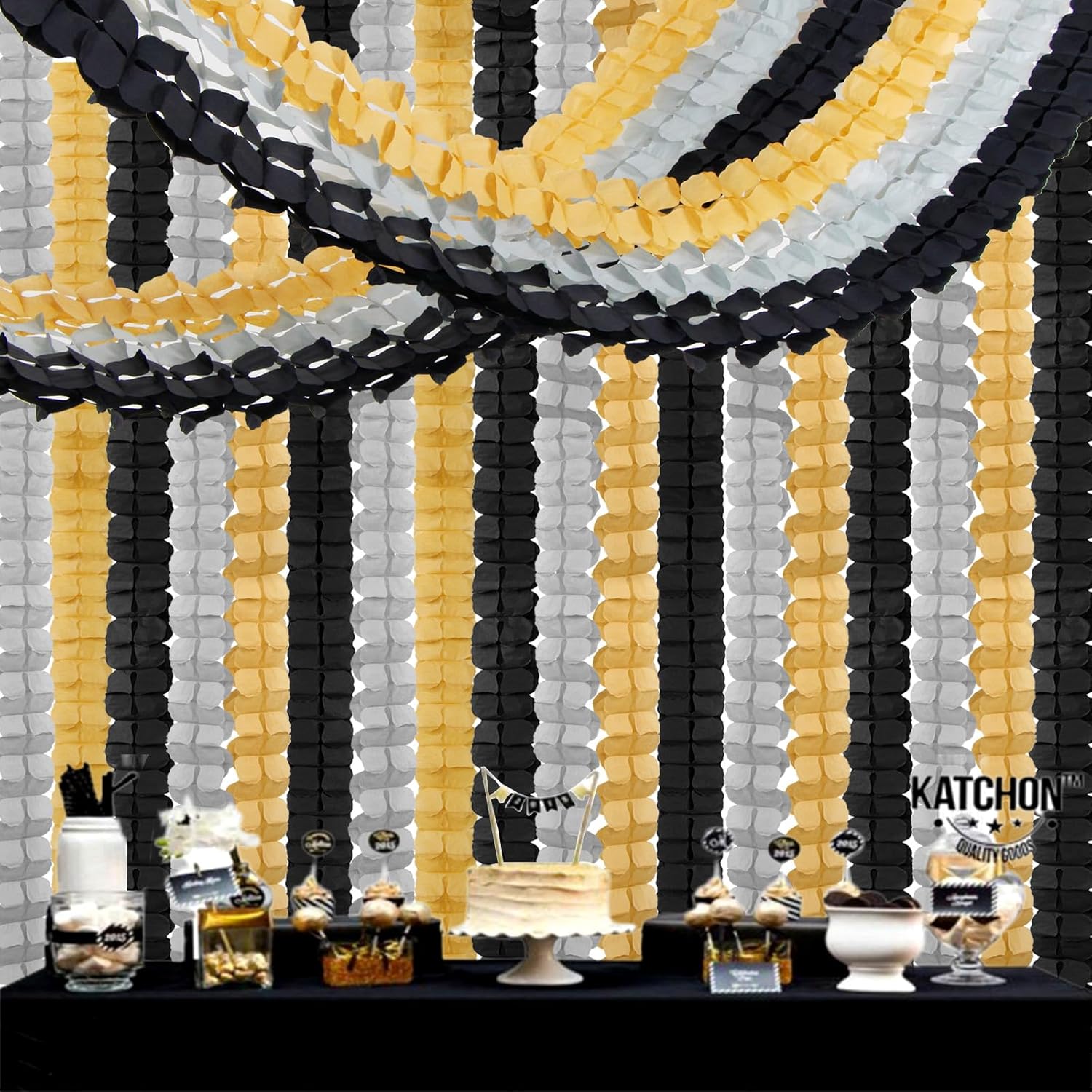 Black-Gold Silver Party-Decorations Streamers Garland - 157Ft Graduation Four-Leaf Clover Hanging Banner,Retirement Men Boys Birthday Wedding Baby Bridal Shower New Years Supplies Decor Hugtmr