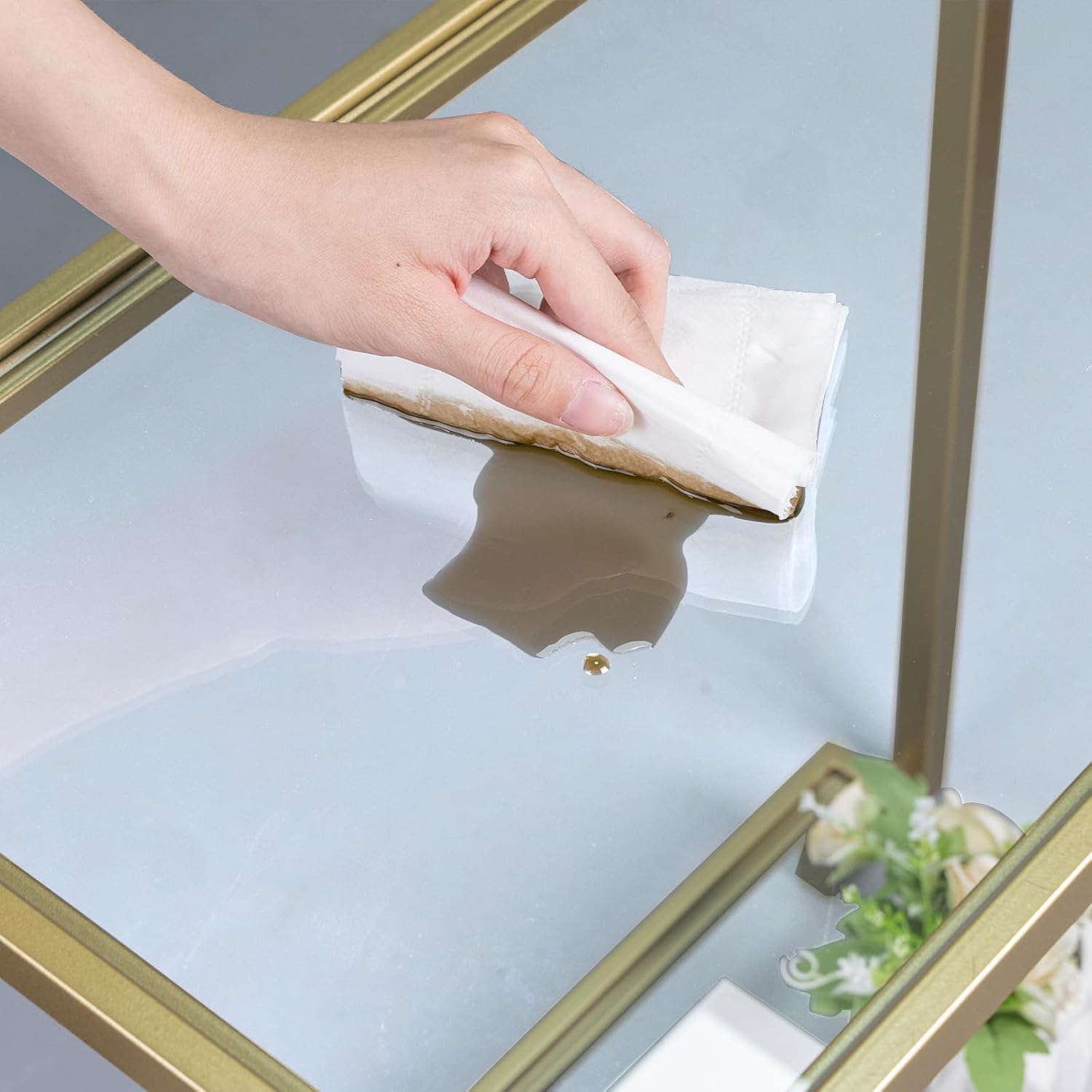 • STURDY: The gold side table is made of high-quality metal frame and sturdy glass, thickened metal frame legs provide stable support. These clear bumper pads under the glass of the rectangular coffee table can effectively protect the glass from being scratched, and the equipped foot pad can prevent the floor from being scratched.
