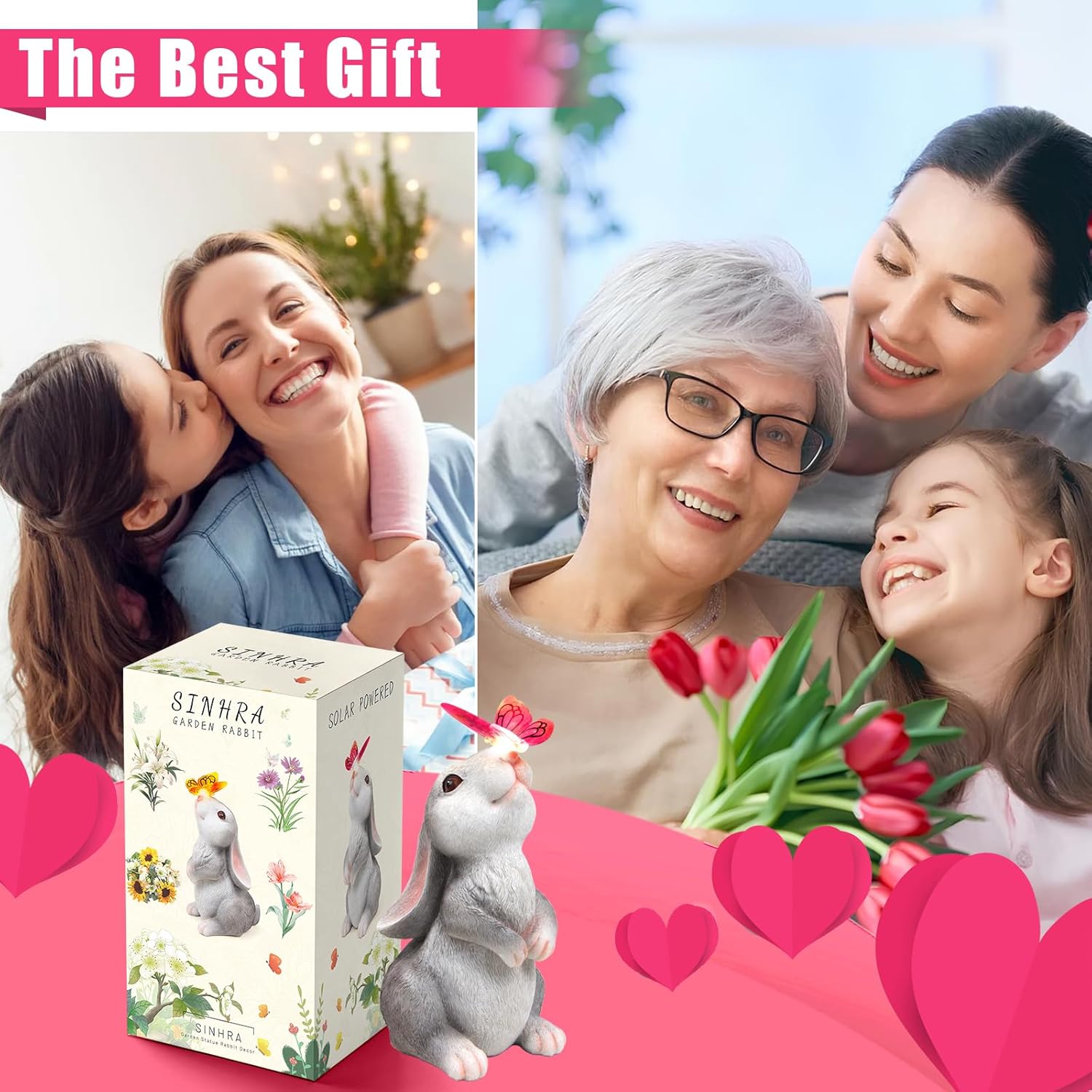 Garden Statue Outdoor Decor-Rabbit with Solar Butterfly Changing Lights Garden Statues,Bunny Statue for Patio,Balcony,Yard,Lawn Ornament,Gardening Gifts for Mom Grandma