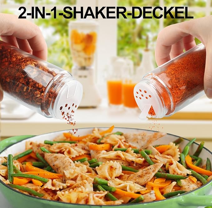 • 【2-In-1 Shaker Lids】Our spice jar set has a special 2-in-1 shaker lid for jars with 2 kinds of sprinkle ports,and on one side and sprinkling powdered spices on the other. The thoughtful opening is designed to meet your daily use needs without changing the lids.In addition,the outer sealed bamboo lid keeps the spices fresh and dry.