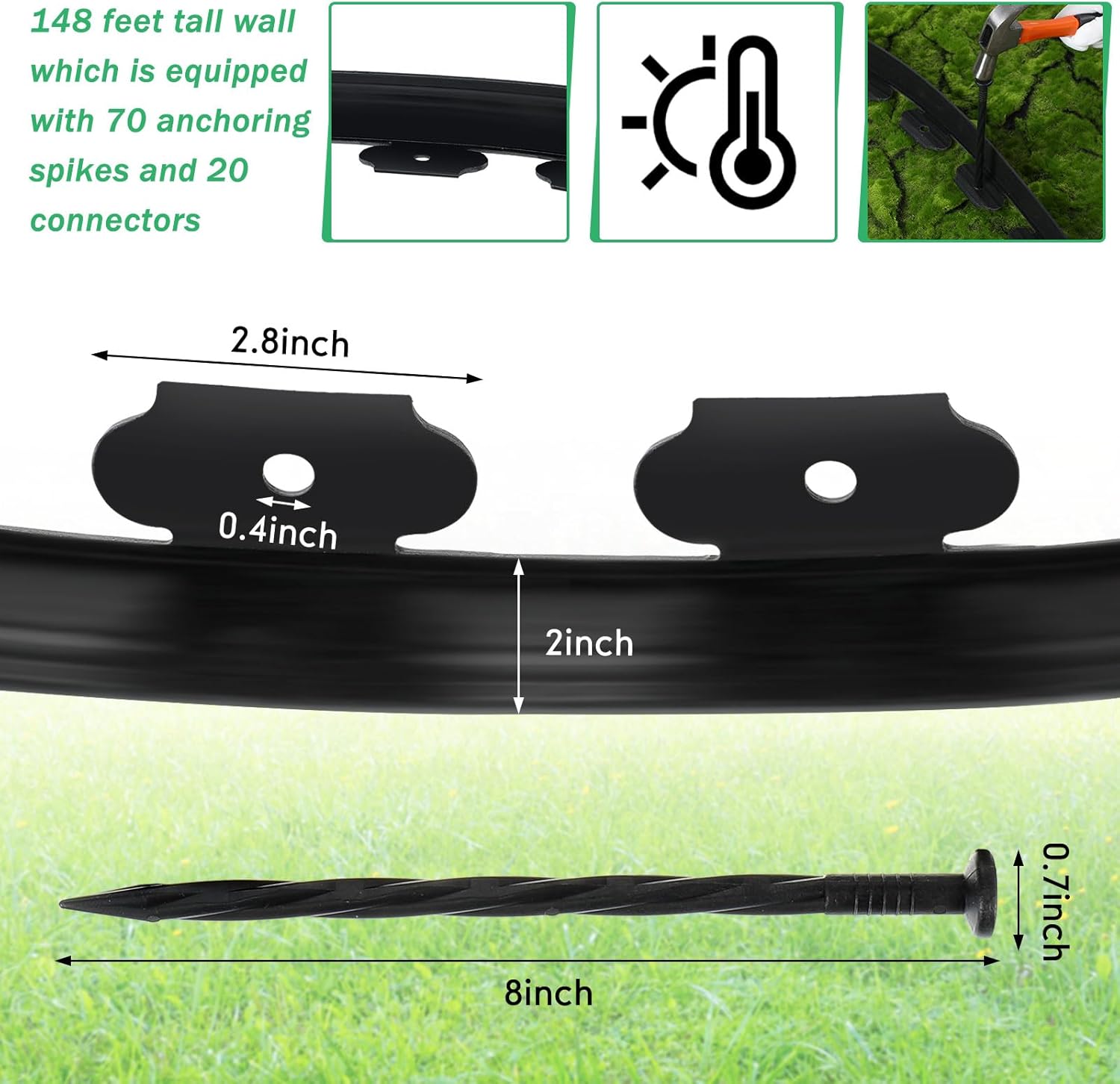 • What You Will Get: edging roll kit includes 148 feet tall wall landscape edging, which is equipped with 70 anchoring spikes and 20 connectors, sufficient number of anchoring spikes and long landscape edging can meet your daily use needs