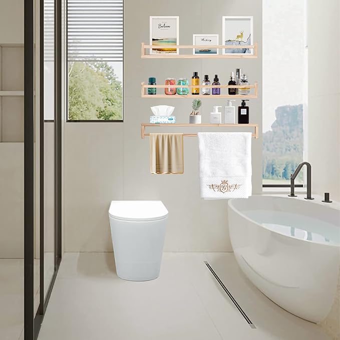• Space-Saving Wall Shelves: Floating shelves are practical and fixed to the wall will take up less floor space while increasing storage space. You can put it in your child's bedroom as a space-saving bookshelf, or use it as a spice rack or condiment rack in the kitchen. You can also put it in the bathroom to store toiletries.