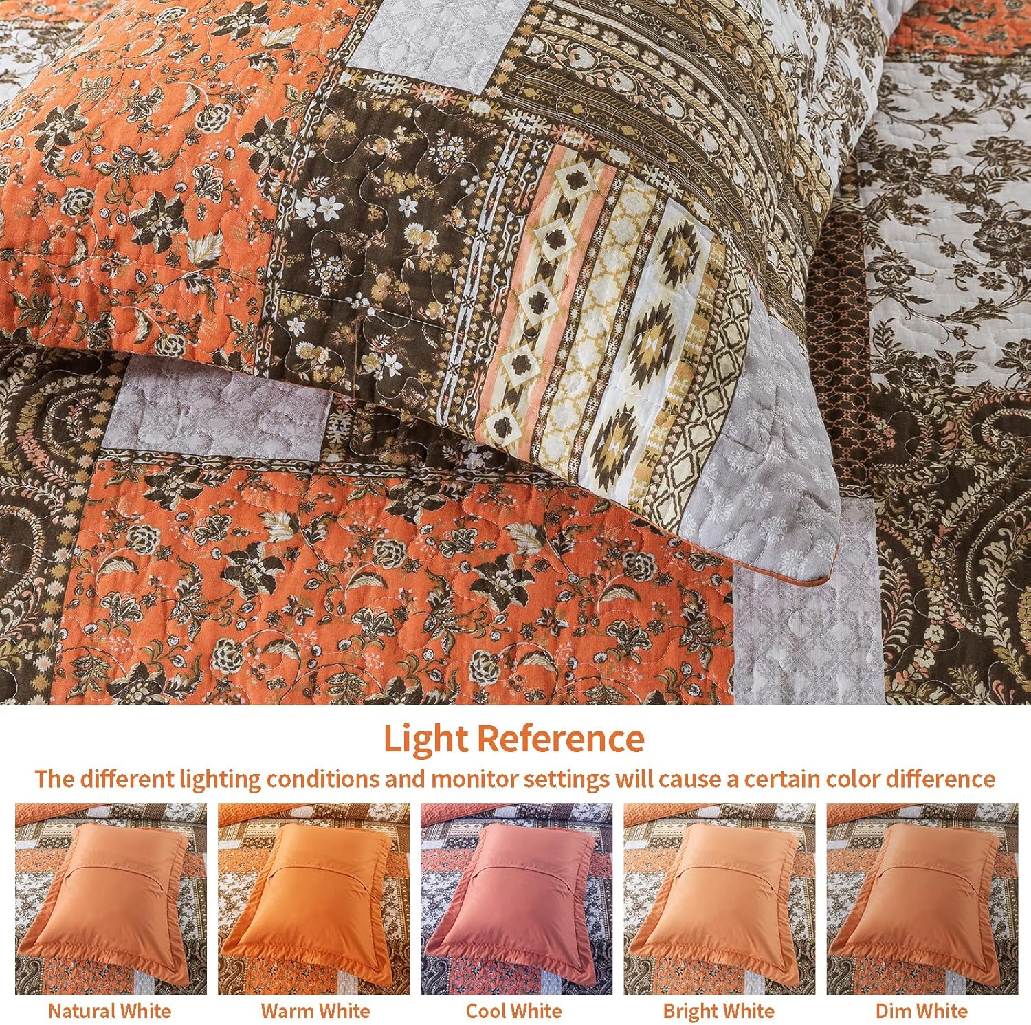 VAPUTAR Quilts Queen Size - Fall Cotton Quilt Set Quilted Bedspread Coverlet Lightweighet Bedding Set with Shams for All Season, 3 Piece Boho Patchwork Quitled Bedspread Queen Size (Dream Orange)
