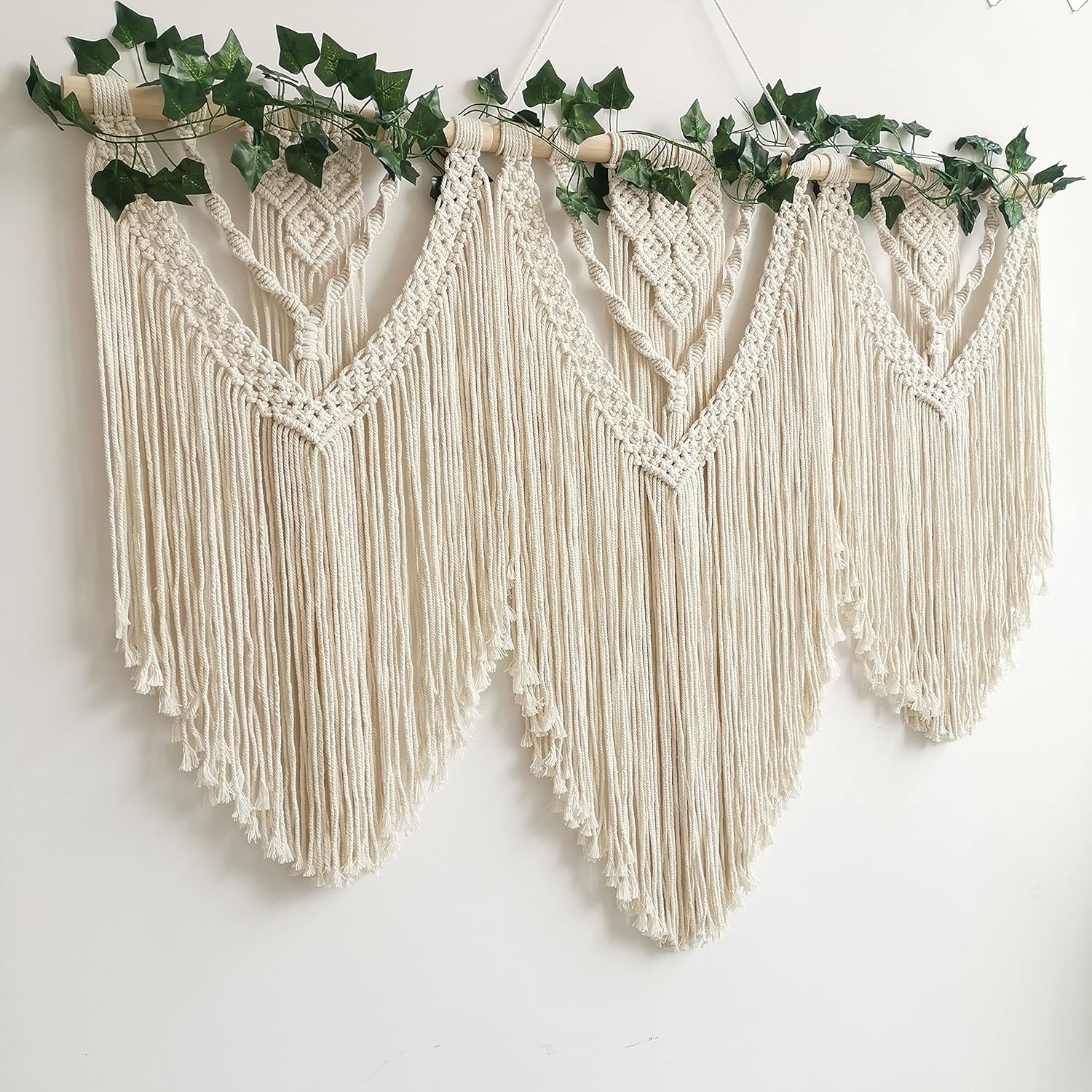 guzhiou large macrame wall hanging - Boho Tapestry Macrame Wall Decor Art- Chic Bohemian Handmade Woven Tapestry Home Decoration for Bedroom Living Room Apartment Wedding Party - 43"x32" (with Ivy)