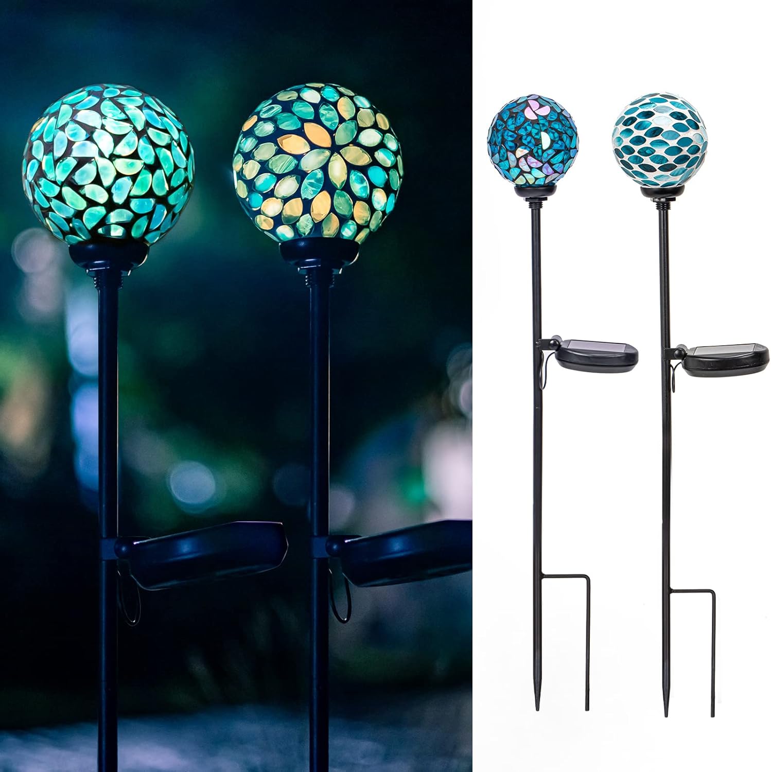 VCUTEKA Solar Lights Outdoor Decorative, Mosaic Solar Garden Light Waterpoof LED Pathway Stake Light for Landscape Lawn Patio Yard Decoration, 2 Pack
