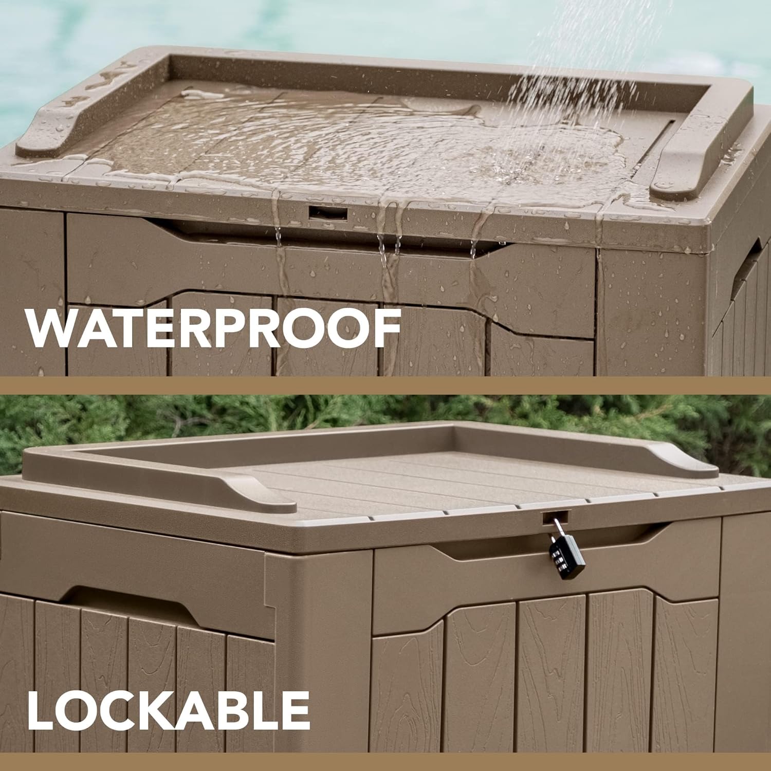 Devoko 30 Gallon Resin Deck Box Outdoor Indoor Waterproof Storage Box for Patio Furniture Pool Accessories Storage for Cushion Garden Tools (30 Gallon, Light Brown)