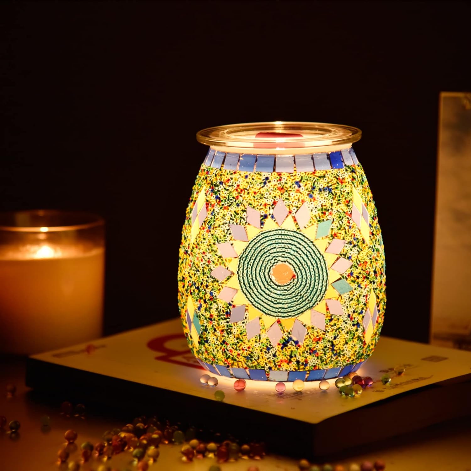 • Warm night light: When the wax melting machine is lit, the built-in light source and the color of the Mosaic material are set off each other, forming a colorful visual effect, creating a warm and romantic atmosphere, adding a color and fun to your life.