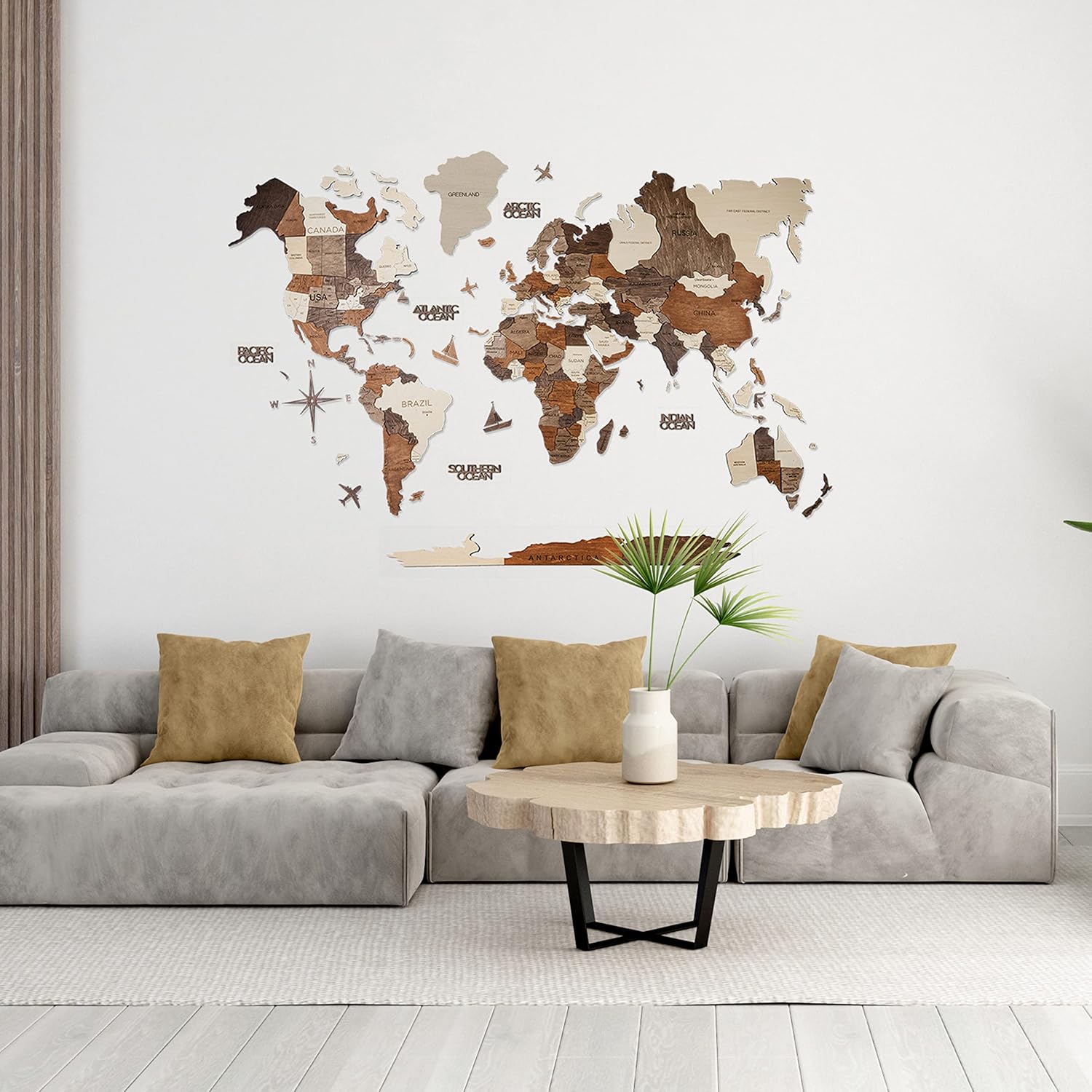 • Premium Quality Construction: This world map wall decor is crafted from superior quality, highly durable birch plywood, available in a selection of 8 colors, 3 sizes and push pins according to your individual needs or preferences.