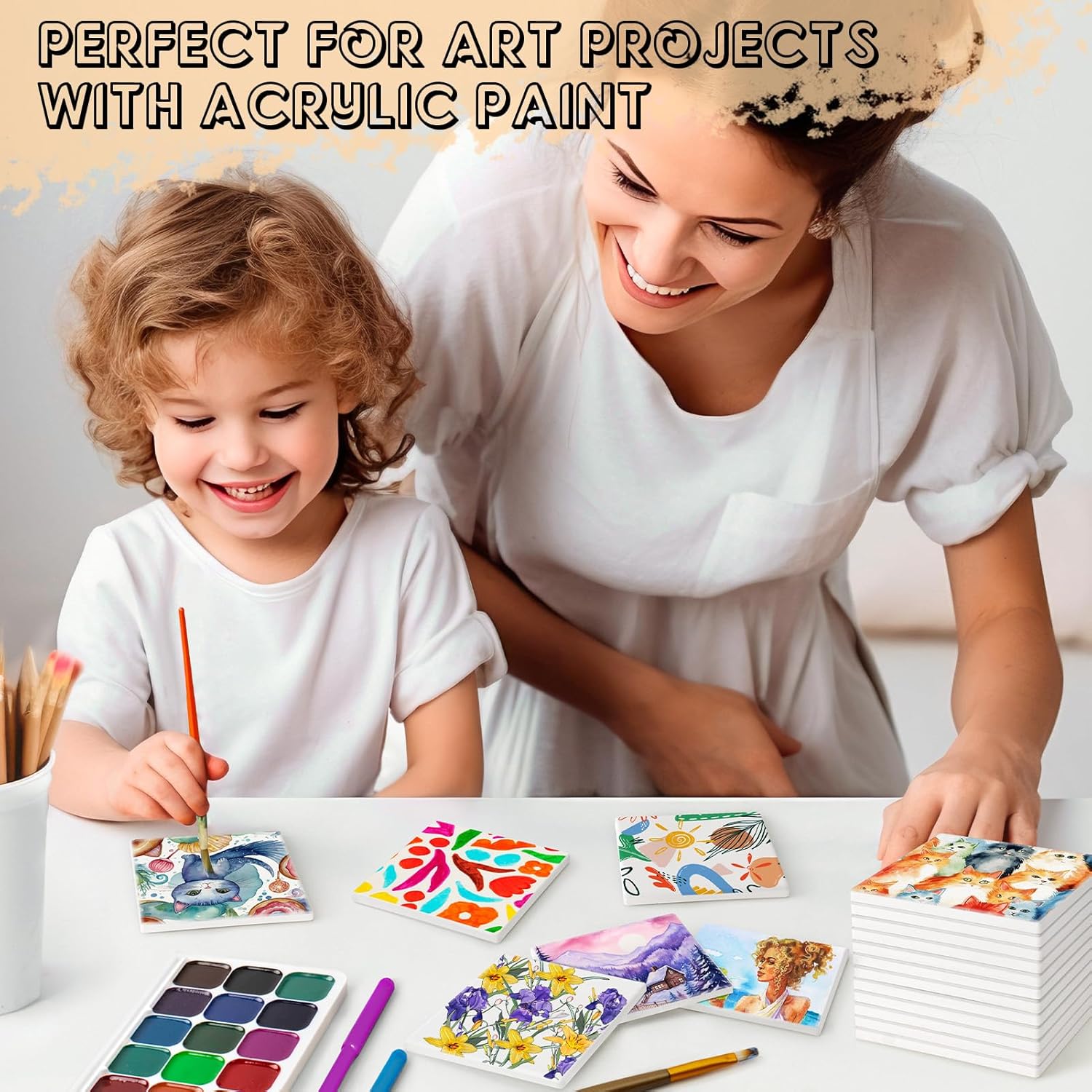 Ceramic Tiles for Crafts, GOH DODD 24 Pack Unglazed Blank Coasters with Cork Backing for Halloween Christmas Alcohol Ink Painting Acrylic Pouring Art Projects Gifts Wedding, Square, 4 Inch, White