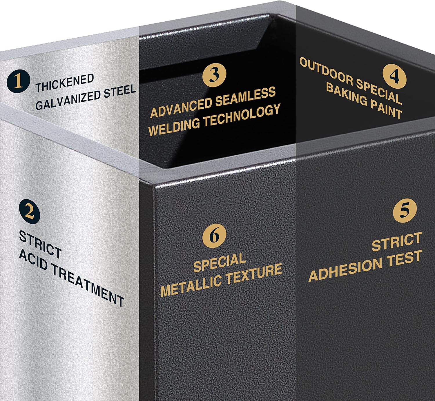 • 【METAL PLANT BOX】This planter box is made from a fully seam welded thick galvanized steel, and adopts outdoor special baking paint, giving the surface a premium metallic color and special texture through advanced powder injection process.