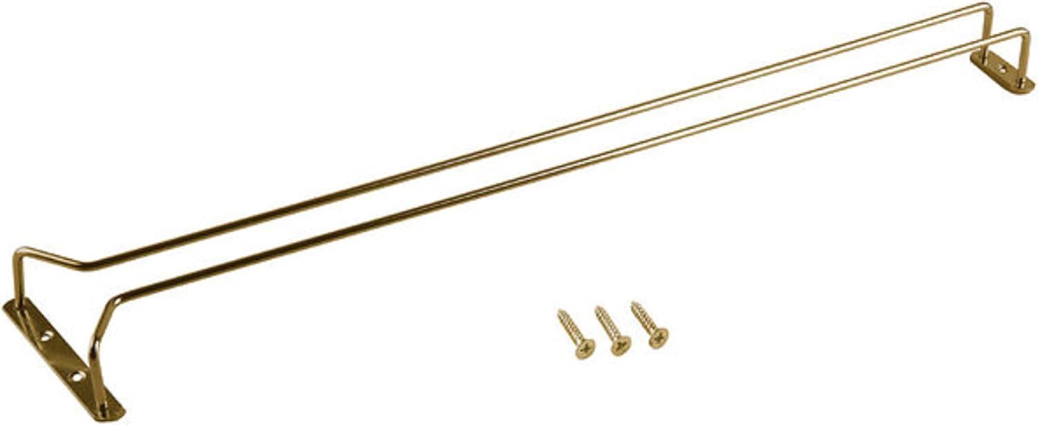 TrueCraftware- 24-Inch Wine Glass Rack Brass Finish Set of 2- Stemware Rack Wire Hanging Rack Under Cabinet Wine Glass Stemware Holder Glass Storage Hanger Organizer for Kitchen and Bar