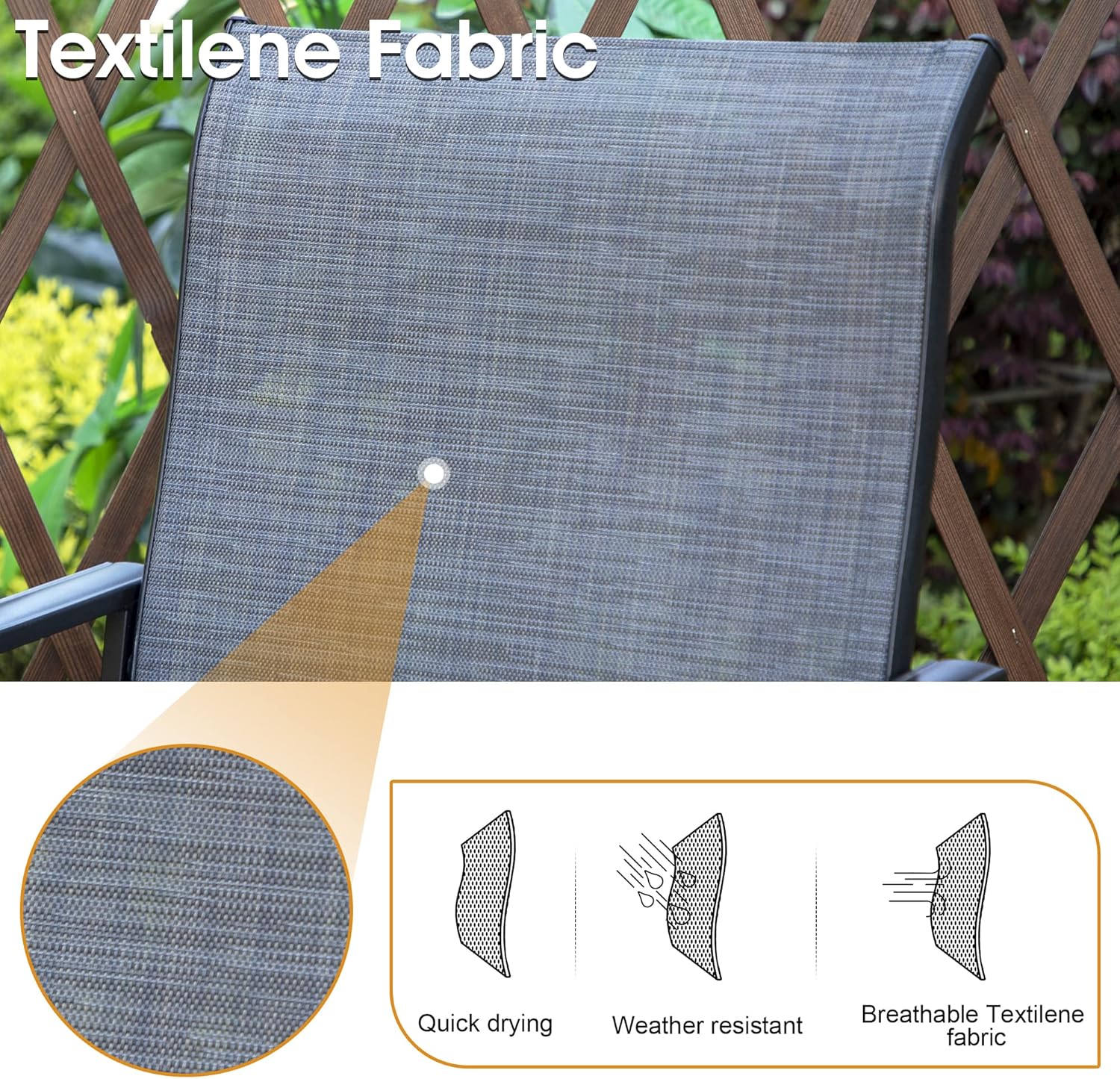 • Quick-Dry and Breathable Fabric: Stay cool and comfortable with our quick-drying and breathable Textilene fabric. Suitable for warm days, this feature adds to the overall comfort of your high top outdoor table and chairs