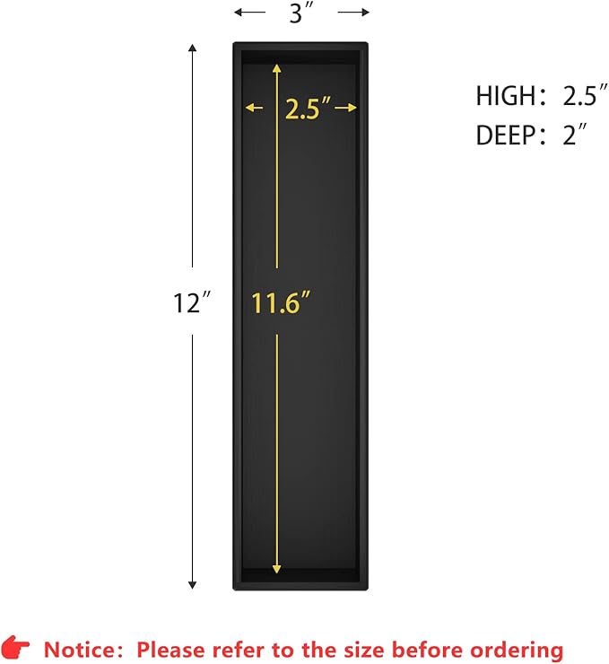 • Product Dimensions : 12"D x 3"W x 2.5"H