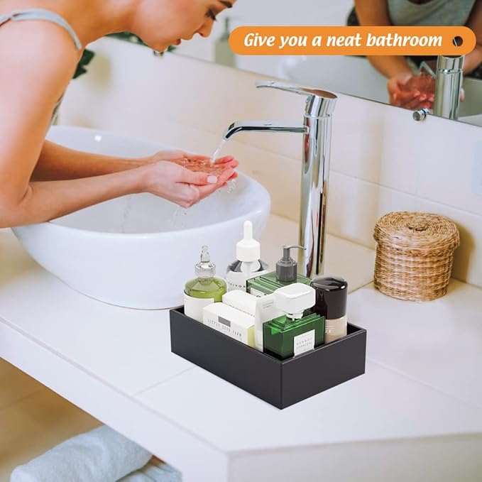 • 【Multi-functional Storage Box】 This deep bamboo organizer boxes are good for organizing items, such as forks, spoons, and knives in kitchen; brushes, soap dispenser and toilet paper in bathroom; cosmetics, makeup tools and hair accessories in makeup room; documents, pens and paper clips in office. Try this bamboo storage box organizer - ending clutter in your office desk and kitchen drawer.