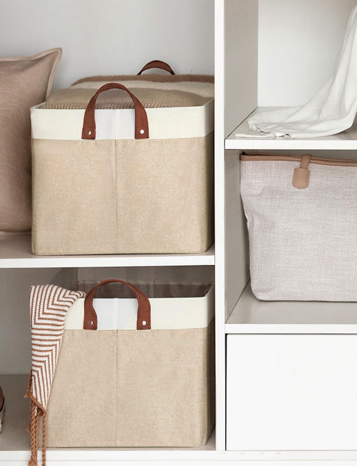 StorageWorks Storage Bins, Fabric Storage Bins for Shelves, Extra Large Storage Baskets with Metal Frame, Closet Baskets and Bins with Handles, Jumbo, Brown and White, 2-Pack