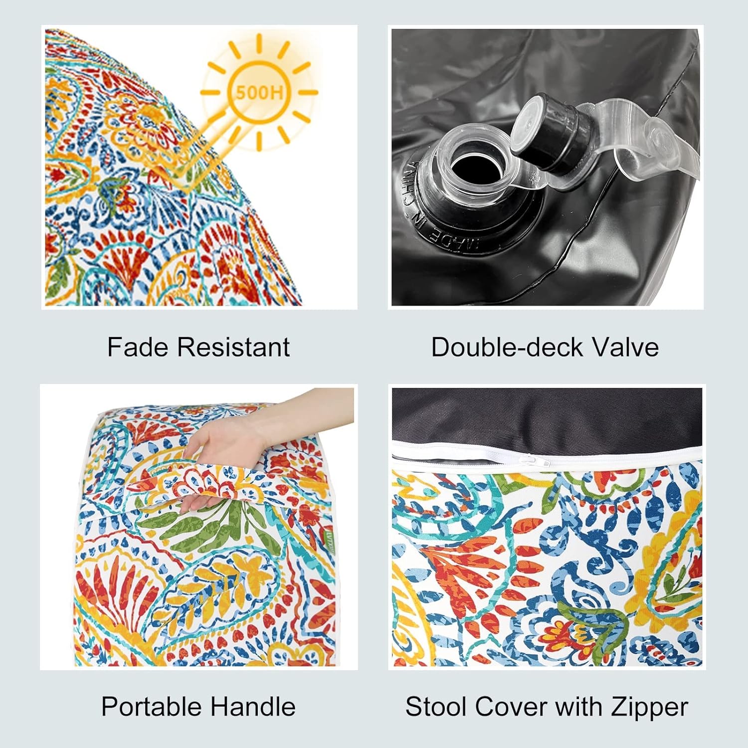 LVTXIII Indoor/Outdoor Inflatable Ottoman, D31 x H14 Inch Large Round Ottoman, All Weather Foot Rest Stool, Portable Footrest for Patio, Garden, Camping and Home - Paisley Multi