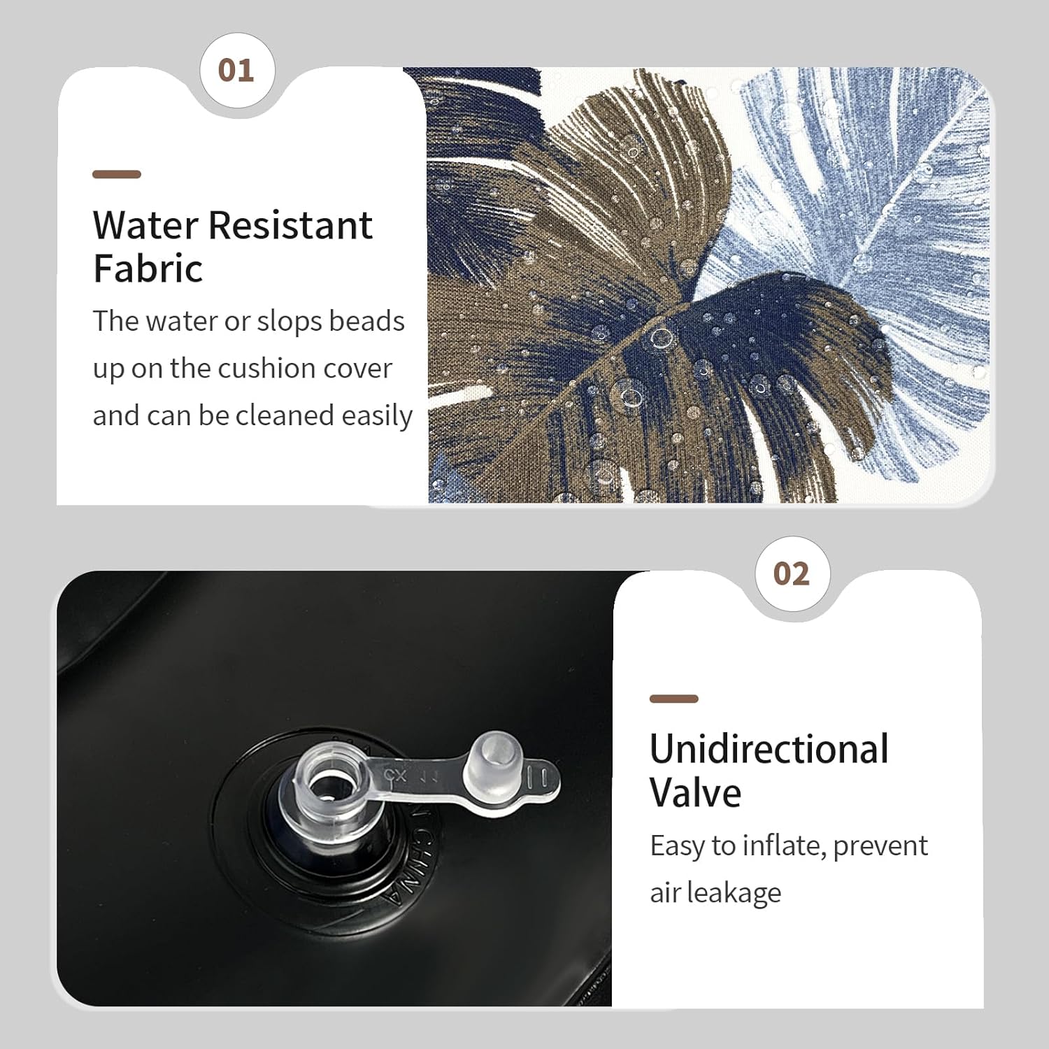 • 【EASY to INFLATE】 - Begin by placing the inflatable component into the cover prior to inflation. Utilize the foot pump to inflate it to approximately two-thirds of its size, then zip the cover halfway. Continue inflating until fully expanded and securely zip it closed. Ensure that the valve is properly sealed