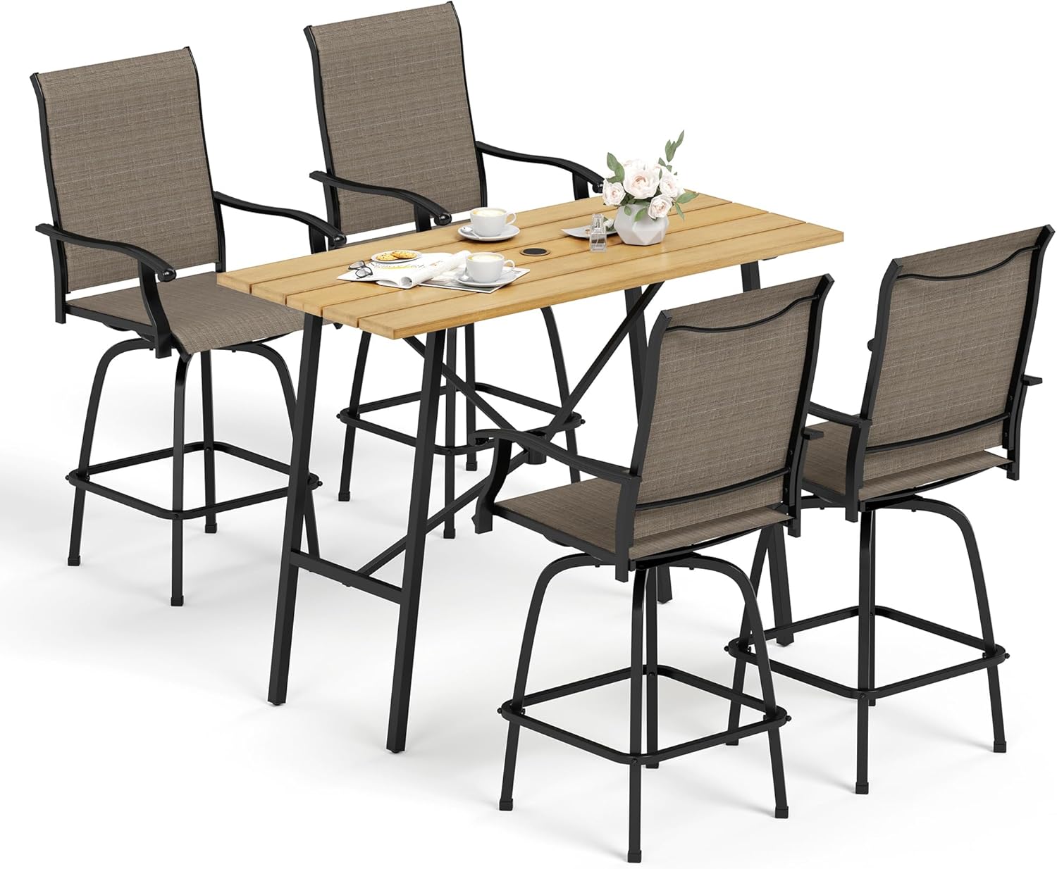 Sophia & William Outdoor Bar Set, Patio Bar Table and Chairs Set, Bar Height Patio Set - 4 x Swivel Bar Chairs(Brown), 1 x Rectangular Bar Table(Wood-Like)