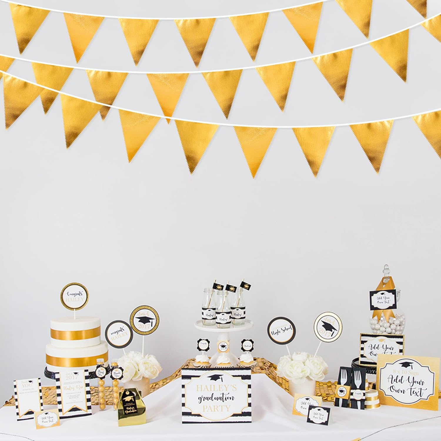 • PERFECT CHOICE - This gold triangle garland flag are good ideal for any kind of celebration,party,festival,events or other occasion.It can be used for both kids and adults.Such as birthday,wedding,bachelorette party,anniversary,baby shower,retirement party,family gatherings,graduation,outdoor activities,picnics,holiday party,Christmas,new year party,hen party etc.