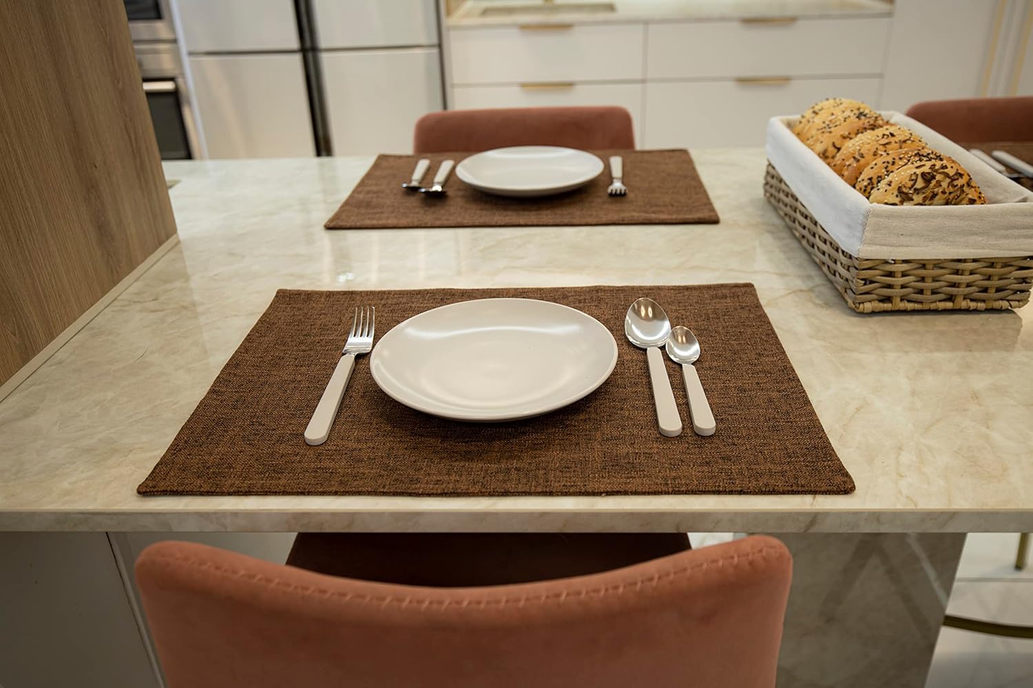 Placemat Set-Washable Place Mats for Parties, Elegant Table Mats for Kitchen Table, Set of 4 Dining Table Placemats, Heat-Resistant Cloth Placemats for Indoor and Outdoor,13x19-Brown