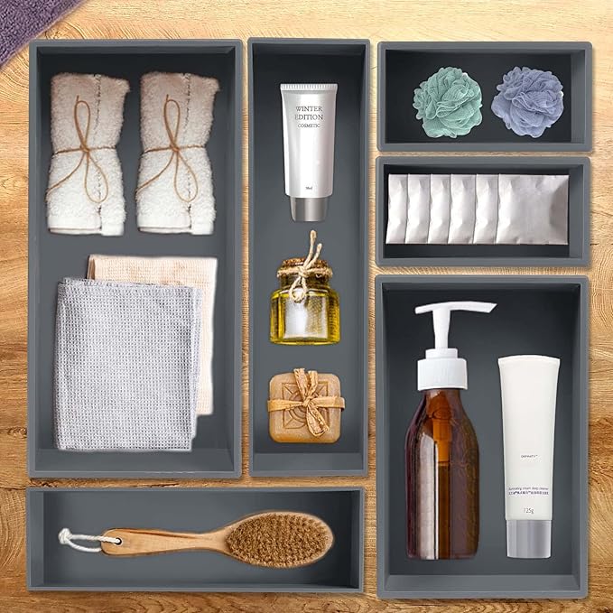 Bamboo Drawer Organizer - Kitchen Utensil Organizer Silverware Tray Cutlery Holder,Office Desk Supplies and Accessories,8.9 * 5.9 * 2.6,Grey