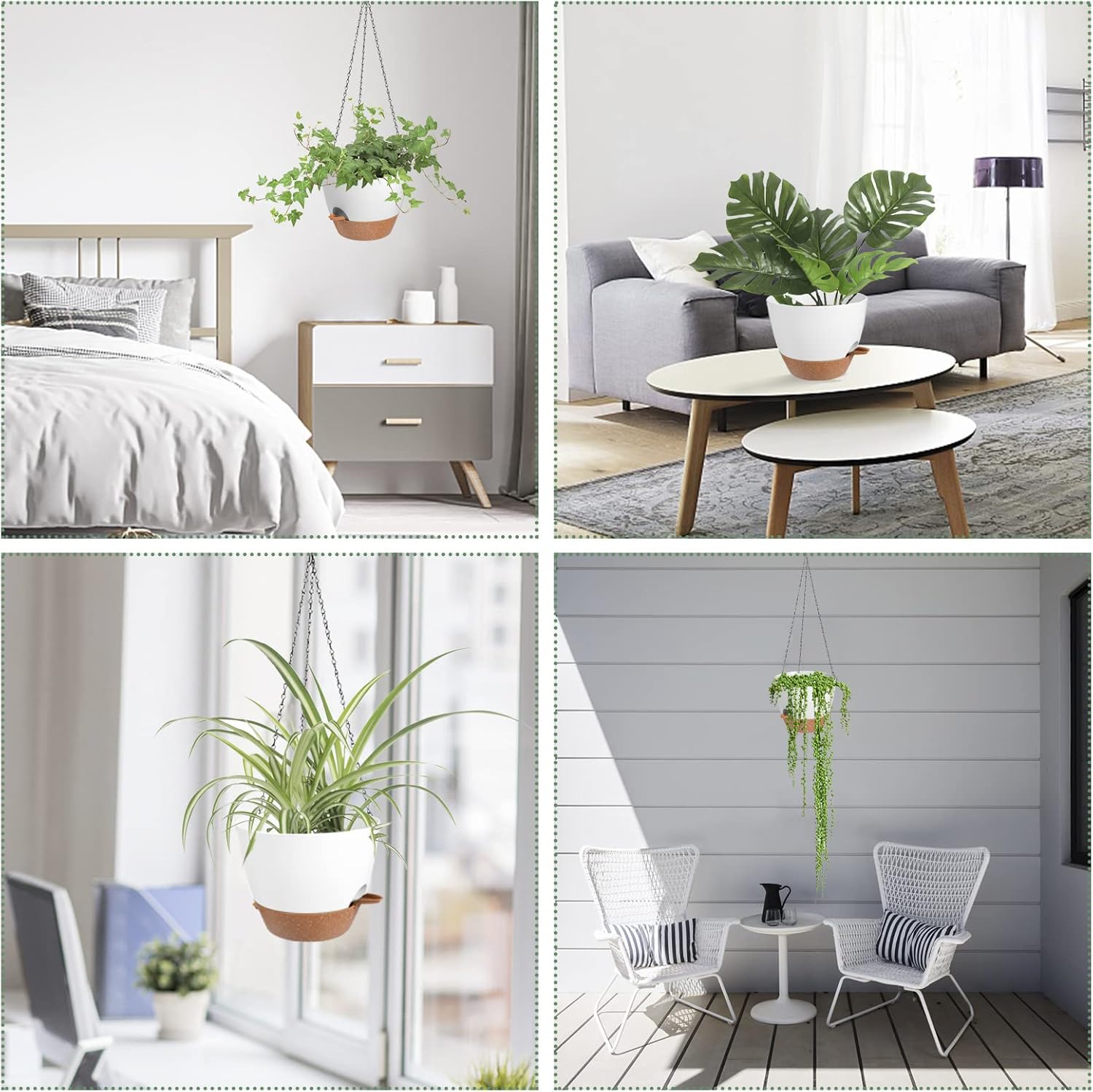 • Removable Trays - Hanging pots for plants indoor tray can be removed as a reservoir for self-watering, where excess water from the self-watering plant pots is drained into the tray, which stores a certain amount of water for the plants (7-14 days). You don't have to worry about your plants running out of water when you're away on a business trip or traveling.