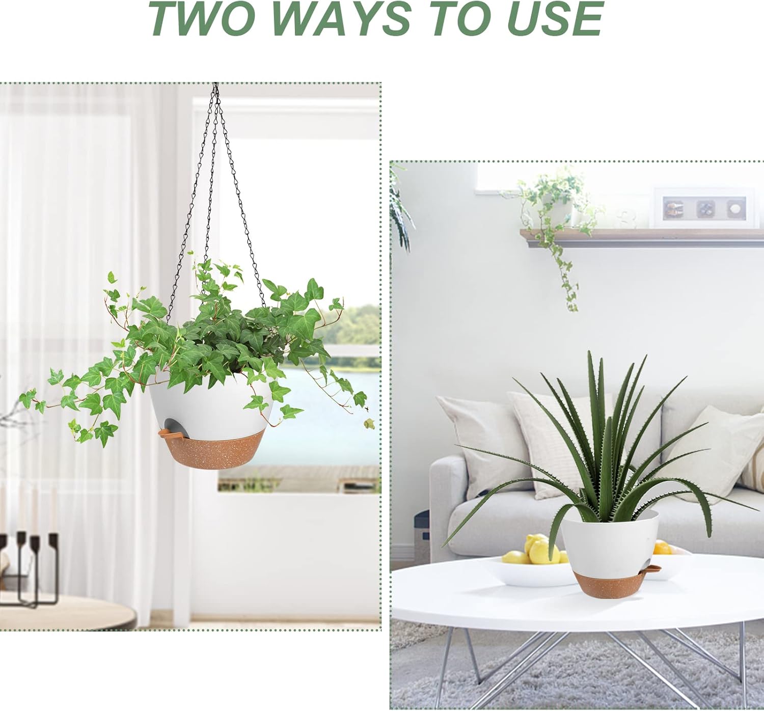 Hanging Planters for Indoor Outdoor Plants, 2 Pack Self Watering Hanging Pot with Drainage Holes & Removable Tray (White, 10'')