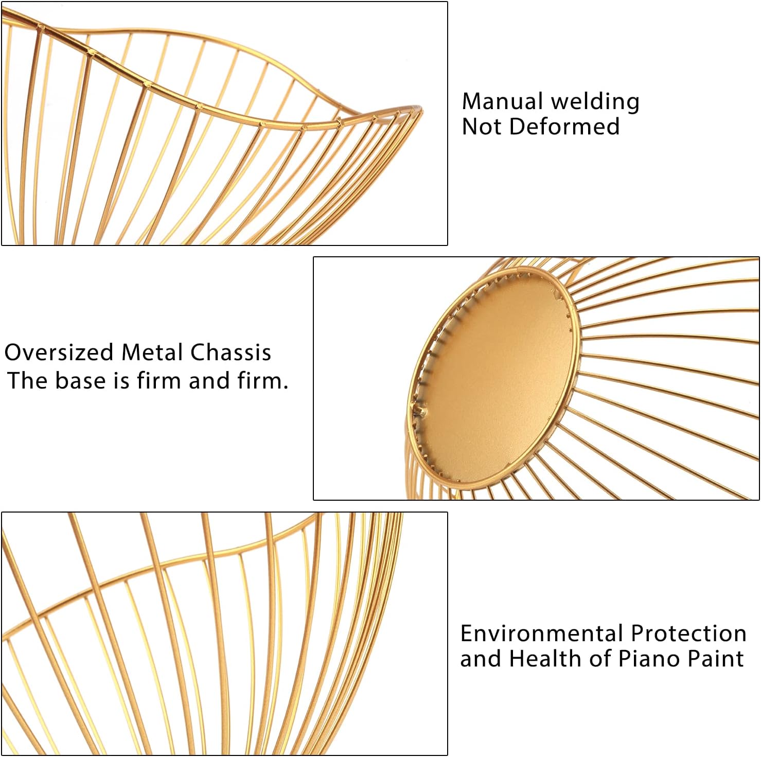 • Anti-Slip Bottom: The round iron piece at the bottom of the wire fruit basket to balance the basket more stable, there are 4 small rubber feet at the bottom to prevent sliding, easy to drag the kitchen fruit basket without damage the counter