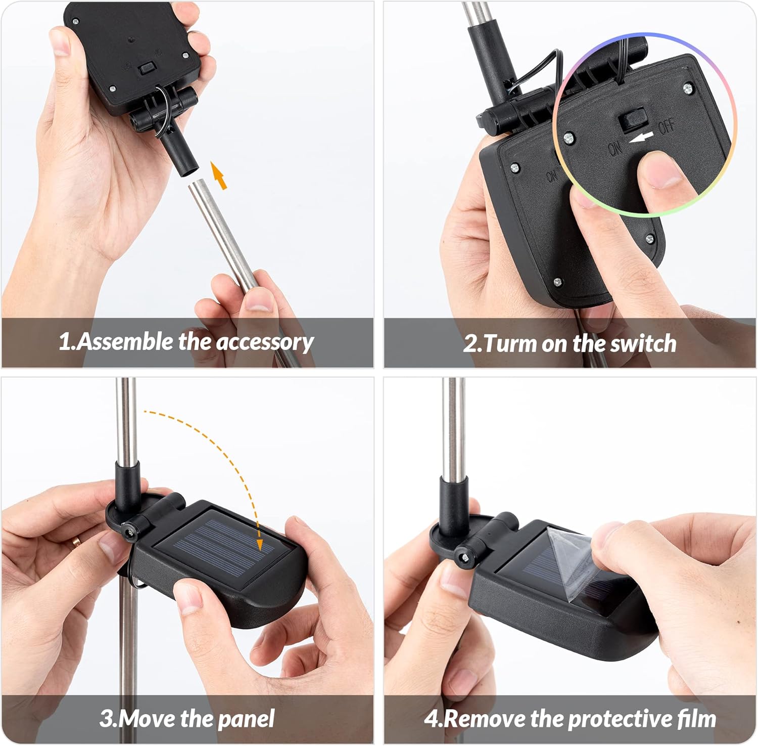 • 【Energy Conservation】No electricity needed, and absorb sunlight to charge. These color changing solar lights are powered by a solar charged AA battery which is replaceable. Rechargeable battery can work continuously for 8-10 hours once fully charged