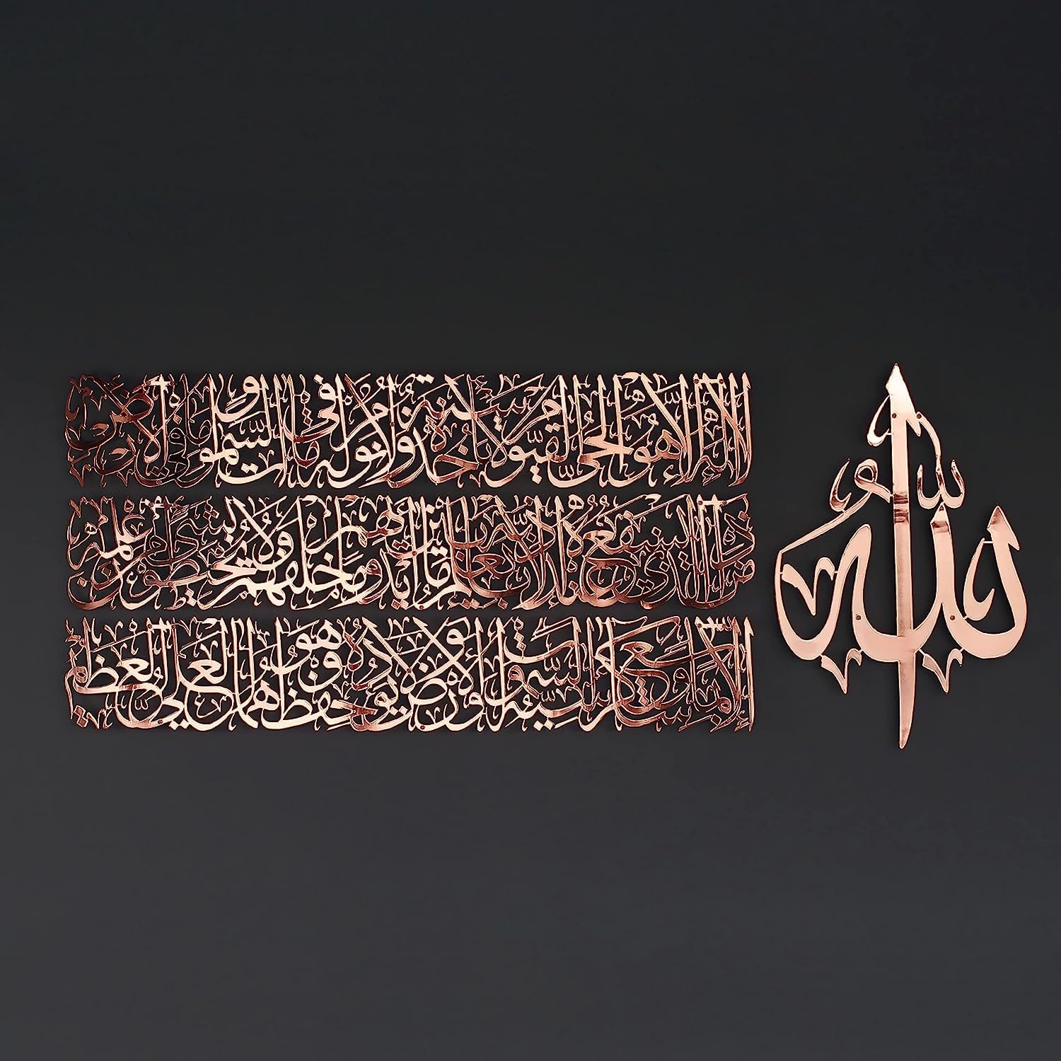 iwa concept Horizontal Design Ayatul Kursi Metal Islamic Wall Art | Ramadan Decorations | Modern Muslim Housewarming Gift | Arabic Calligraphy | Quran Wall Art | Eid Decor| (Medium_Shiny Copper)