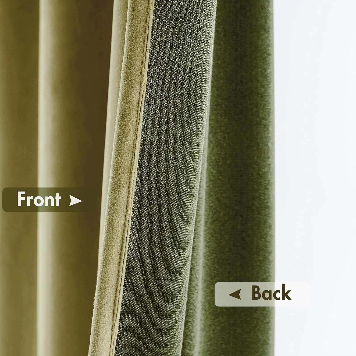 MIULEE Moss Green Velvet Curtains Thermal Insulated Blackout Curtain Drapes for Bedroom Living Room Darkening 96 Inches Long Curtains Panels Rod Pocket Set of 2