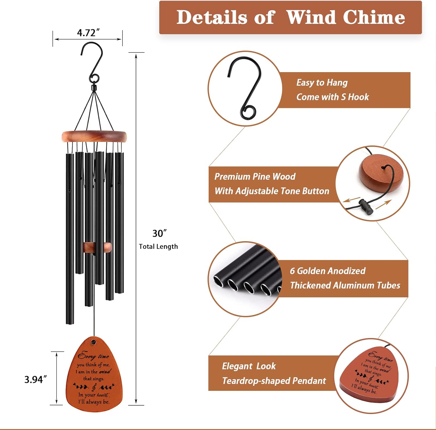 • Better Alternative than Flowers: Flowers will fade, but the memorial wind chimes will last a long time. This wooden wind chime is made of high-quality pine wood and 6 anodized aluminum tubes, making it lasting, waterproof, wear-resistant, and can endure all kinds of harsh weather.