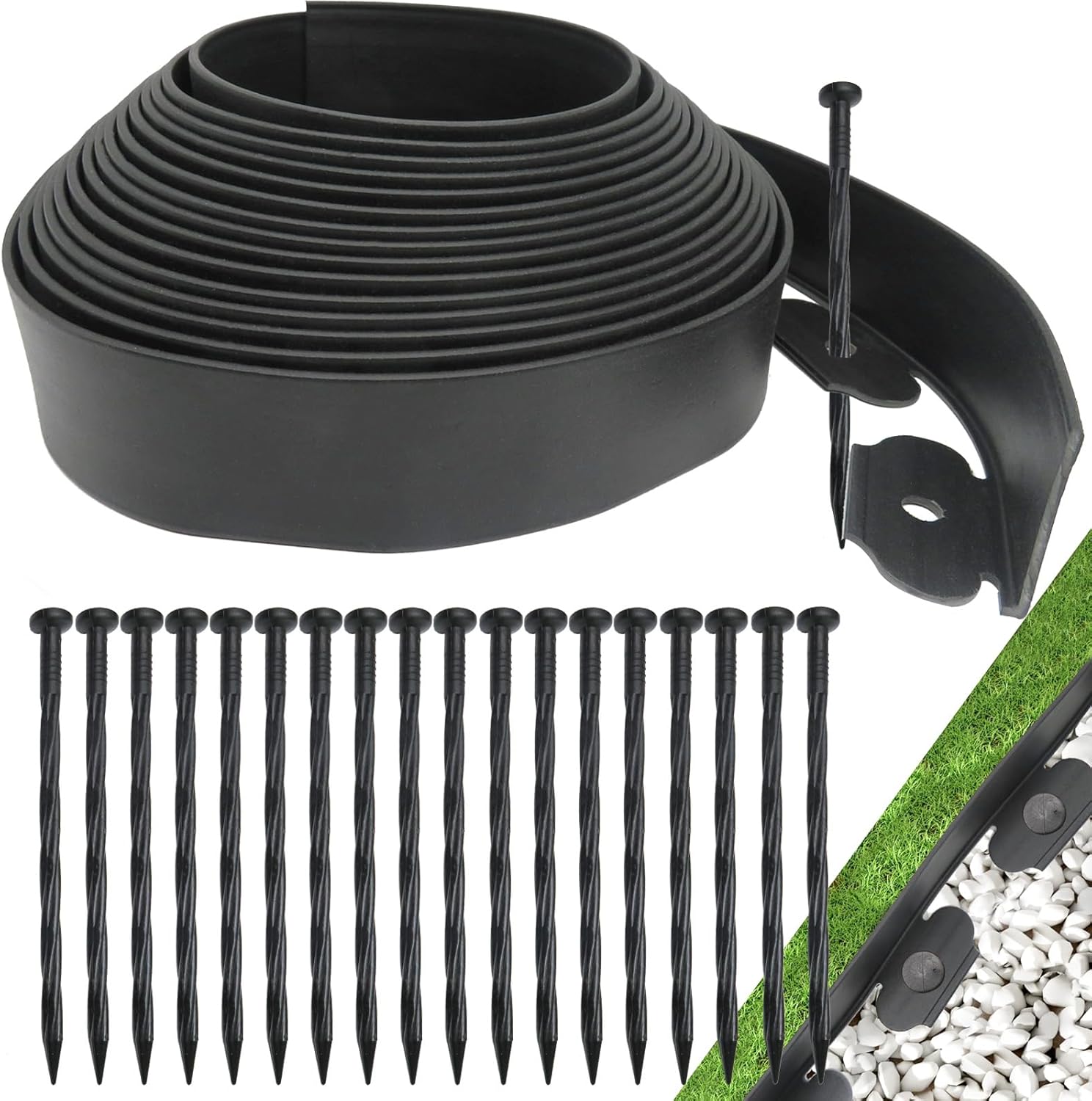• 【Works Great】The edging was high enough to hold stones on the walk side and mulch on the flower garden side. The landscape borde will last a long time since it broke out of the box.The lawn edging border, bends easily, so that you can form whatever shape your heart desires.
